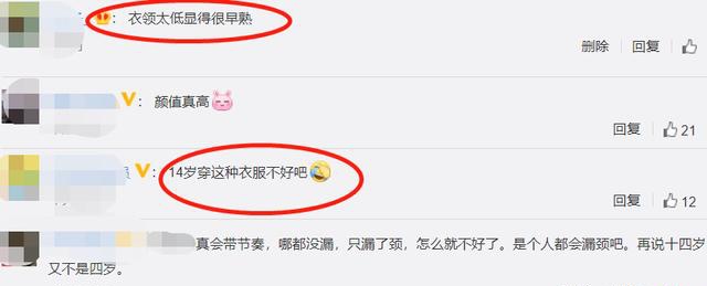 因为外形看起来不像14岁小孩子的原因,多多的着装打扮这一次也再次被部分网友吐槽,大家都觉得过低的衣领并不适合她这个年纪,整体看起来显得非常的早熟。