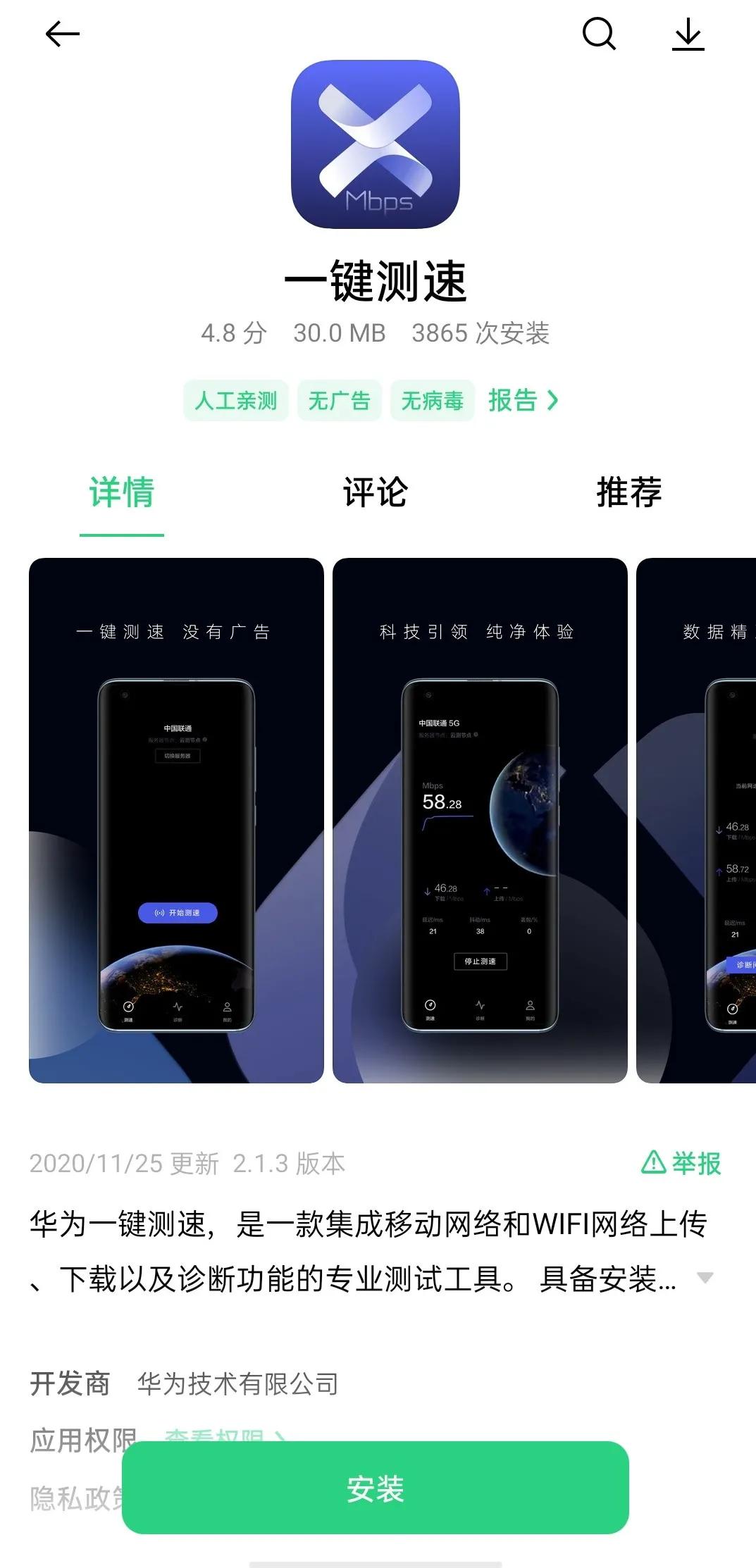这个问题今天终于有了一个完美的解决方案,那就是华为的“一键测速APP”终于上线了。