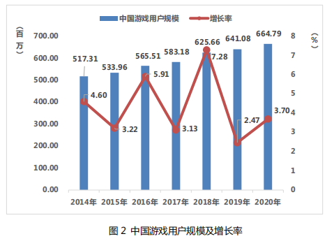 2020 年,中国游戏用户数量保持稳定增长,用户规模达 6.65 亿人,同比增长 3.7%。