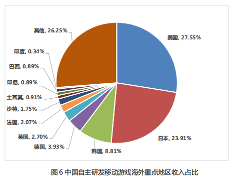 2.3 中国自主研发移动游戏海外重点地区收入占比
