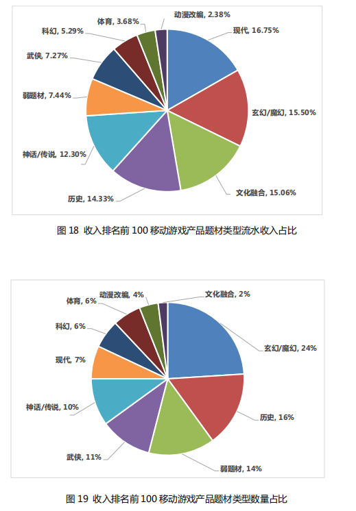 4.5 收入排名前 100 移动游戏产品题材类型流水收入&数量占比