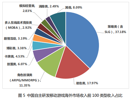 2.2 中国自主研发移动游戏海外市场收入前 100 类型收入占比