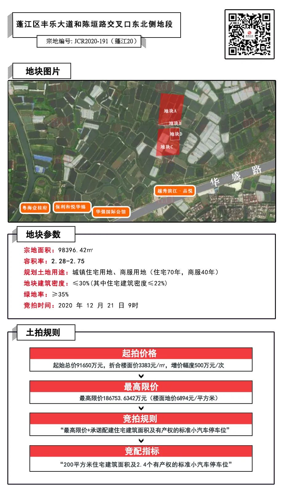 地块分为A、B、C、D 四个地块 开发,出让建设用地面积合计为 98396.42㎡ (约148亩),将于 12月21日9时 竞拍。