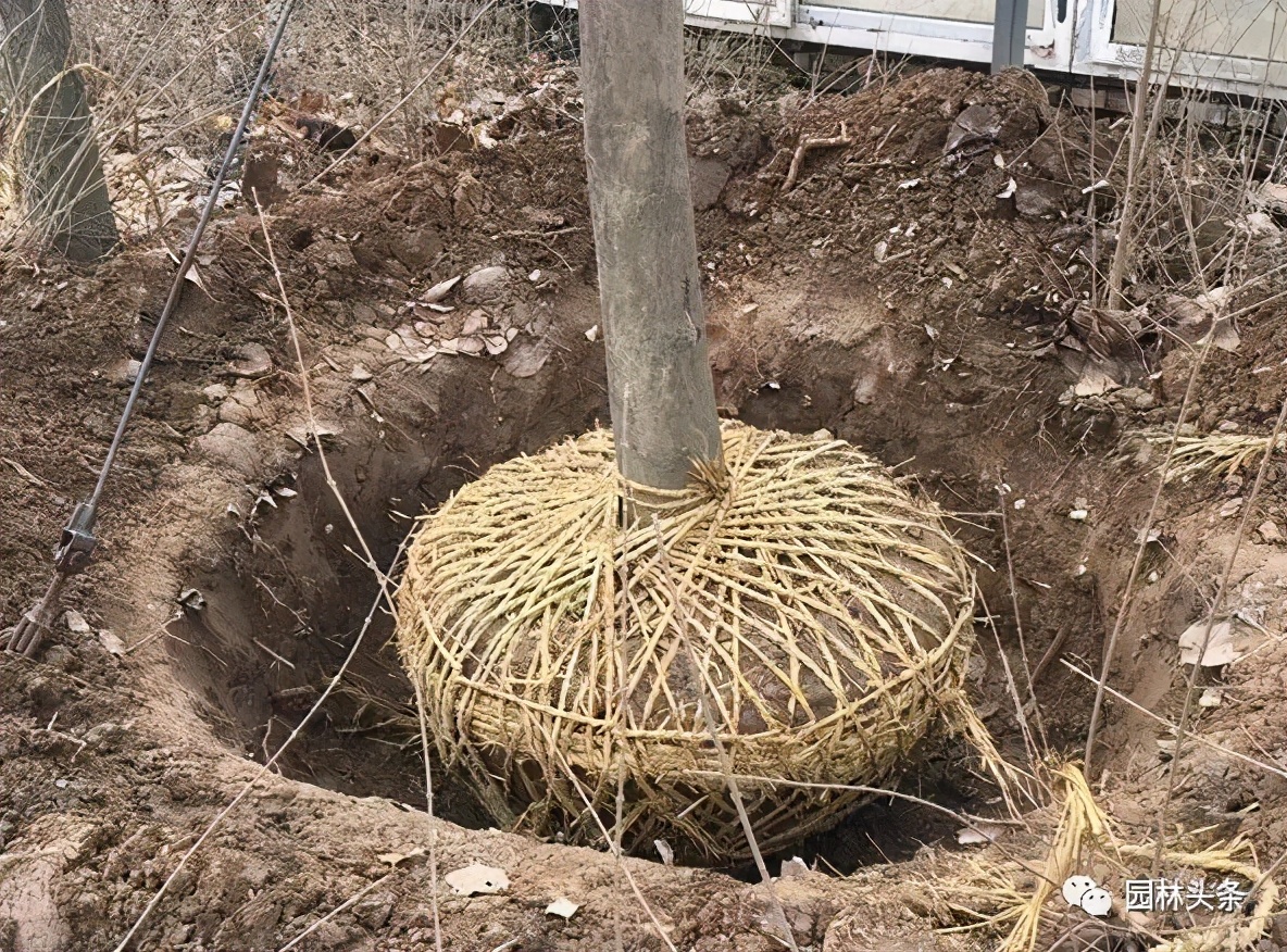 ■ 一般来说,落叶树种(乔木)胸径15厘米以下的苗子可以不带土球,但像玉兰、核桃等具有肉质根的落叶树种,小苗也应带土球;