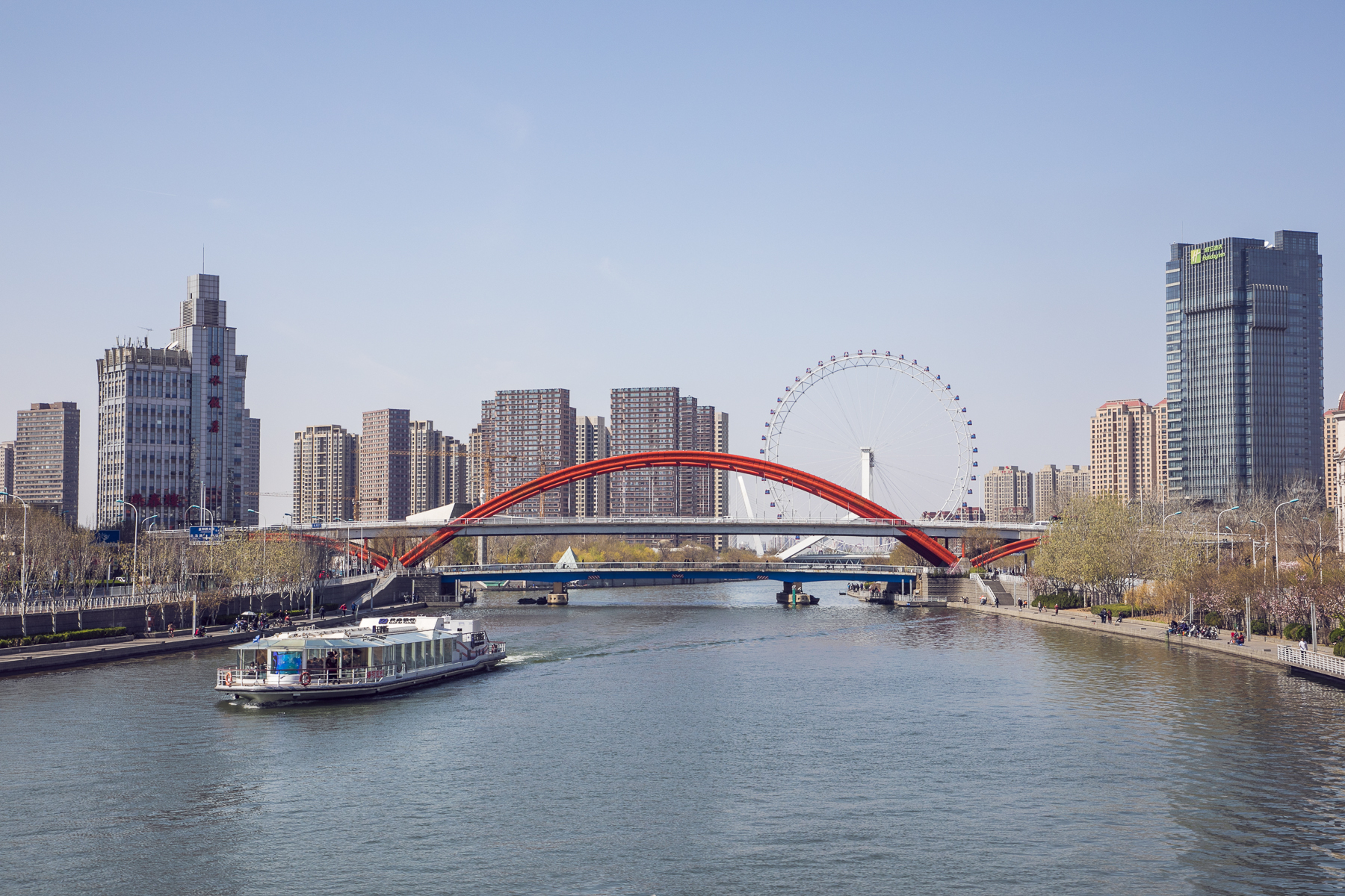 天津的桥也是千姿百态,金汤桥,解放天津的会师桥;狮子林桥,那千姿百态的小狮子雕塑,真是憨态可掬,惹人喜爱;还有最大的桥上摩天轮,天津之眼美轮美奂。