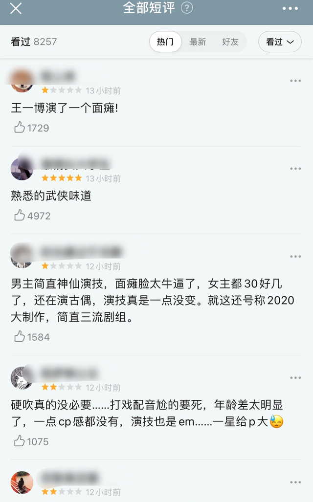 有人说这部剧有武侠的味道了,可也有人批评王一博演技,说他在剧里简直就是面瘫,不少人还因为王一博的演技全盘否定了这部剧。