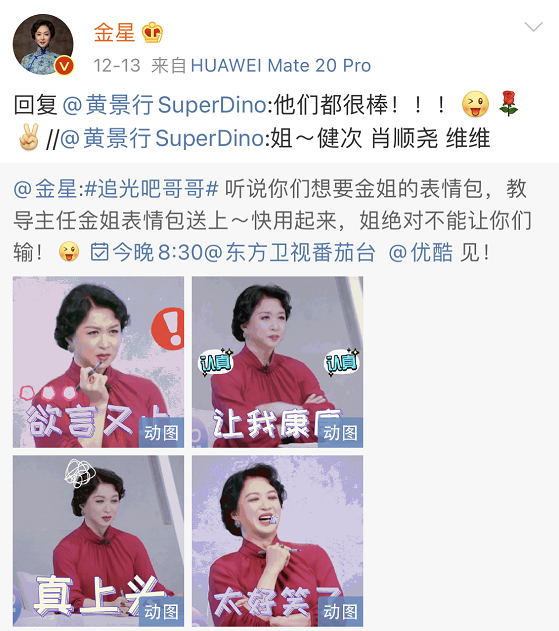 随后,金星老师也在与他人的互动中表现出对肖顺尧等人的赞赏,众所周知,能得到金星老师的认可,可以说是非常荣幸的一件事了。