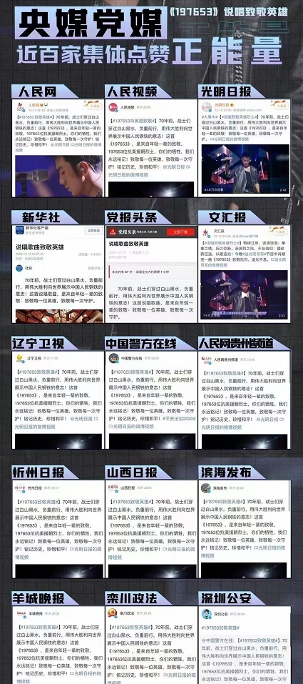 一首极具张力且意义深刻的Rap《197653》一经播出就引起了不小的反响,肖顺尧的演唱风格字字铿锵有力,歌词饱含“家国大义”的情怀令人共情。党媒、央媒等众多媒体也纷纷转发为其点赞:“这是来自年轻一辈的致敬:致敬每一位英雄,致敬每一次守护。”可以说是非常出圈了。