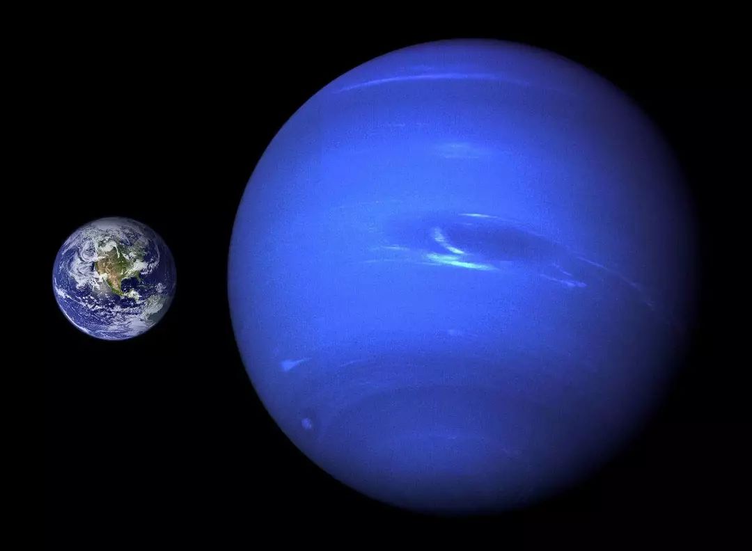 图解: 海王星和地球大小比较。