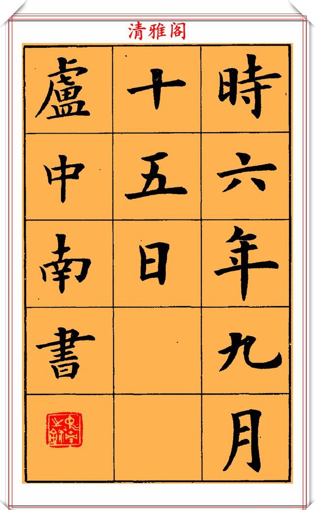 卢的楷书无可挑剔,但无法尽情抒发该千古名作诗词的特种情感与情怀。唯有荡气回肠的毛体真迹方可诠释《岳阳楼记》的意境。卢中南的的楷书,严谨而不失生动,以欧体为宗,结合他法,端庄凝重而又清新秀丽,变化多端,楷有行意,笔画没有刻意的去表达棱角分明,好似重剑无锋,真大乘者!我觉得卢中南的字间架结构是脱胎于王羲之的小楷,辅之以欧虞转折和波碟,在大横折中又吸纳了少许颜的外拓笔法,可谓是身着唐楷雄强的外衣,灵魂还是魏晋灵秀的气韵。他的字看似电闪雷鸣,实则静中暗湧,字字跳动,万剑齐发。欧颜并柔,隶碑渗透,从没见过如此圣手,百览不厌!
