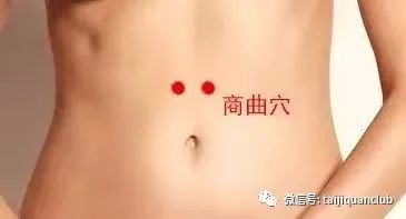 商曲穴出《针灸甲乙经》。别名高曲。属足少阴肾经。商曲是冲脉、足少阴肾经的交会穴。商为金声,大肠属金,曲即弯曲,此穴内对大肠弯曲之处,故名商曲。