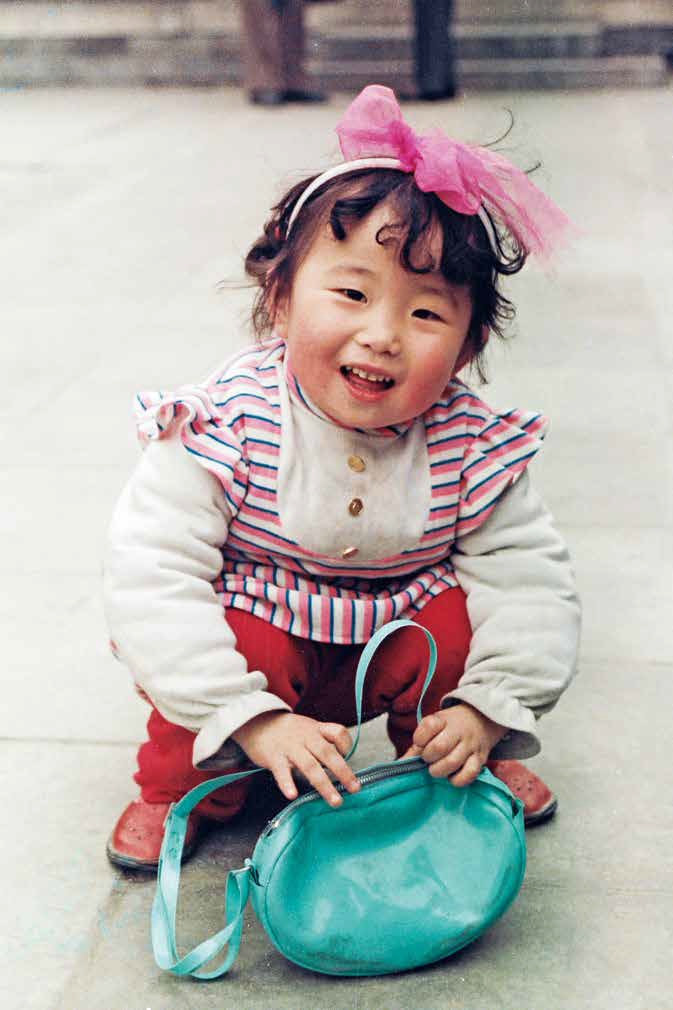 △ 北京,1980年,小女孩穿着粉红色的衣服,拿着一个蓝色的手提包,头上系着一个漂亮的粉红色蝴蝶结,很可爱。