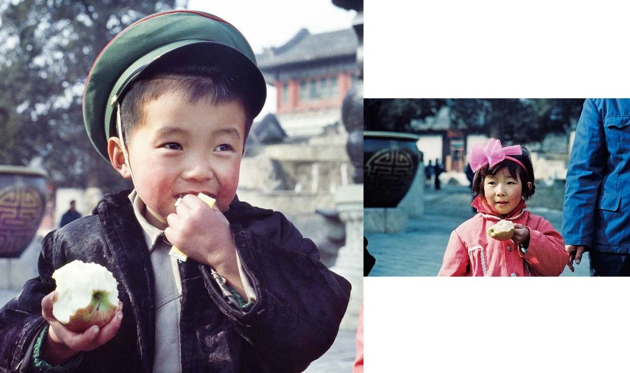 △ 北京颐和园,1980年,小男孩和小女孩在吃游船上的乘客送给他们的苹果。