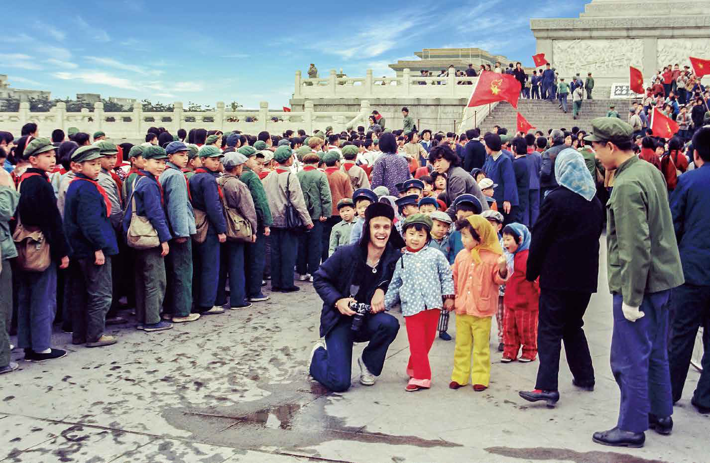 △ 北京,1980年,英国摄影师迈克·埃默里(Mike Emery)和孩子们在天安门广场合影。