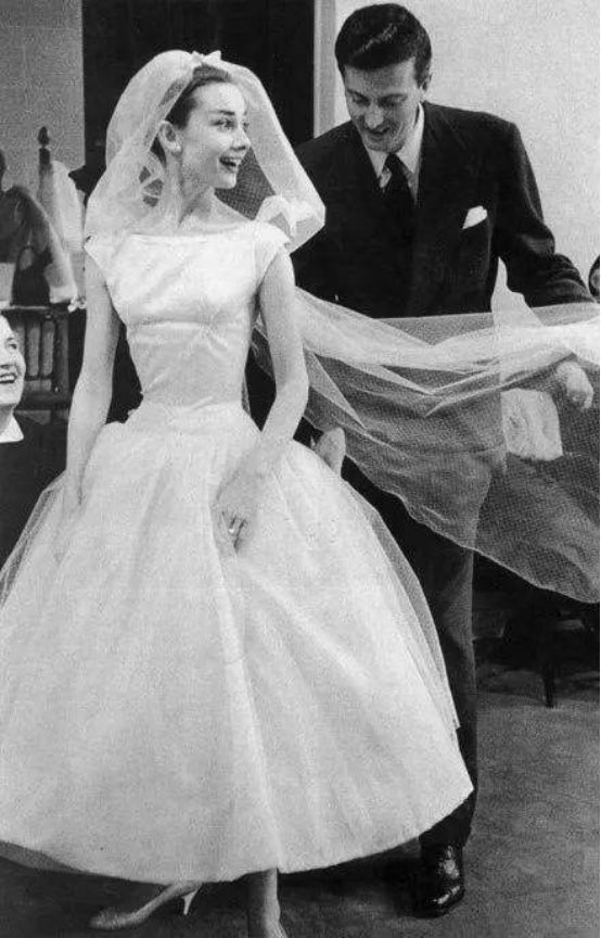 在纪梵希和赫本相识的第二年,赫本就身披纪梵希亲手设计的婚纱,嫁给演员兼剧作家梅尔·费勒,一个比她大了将近10岁的男人。