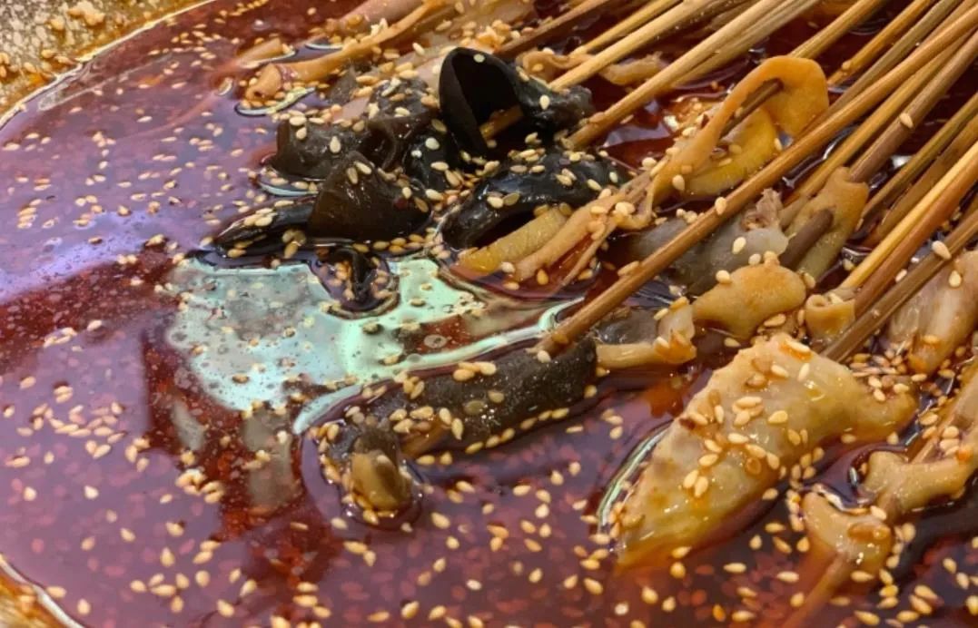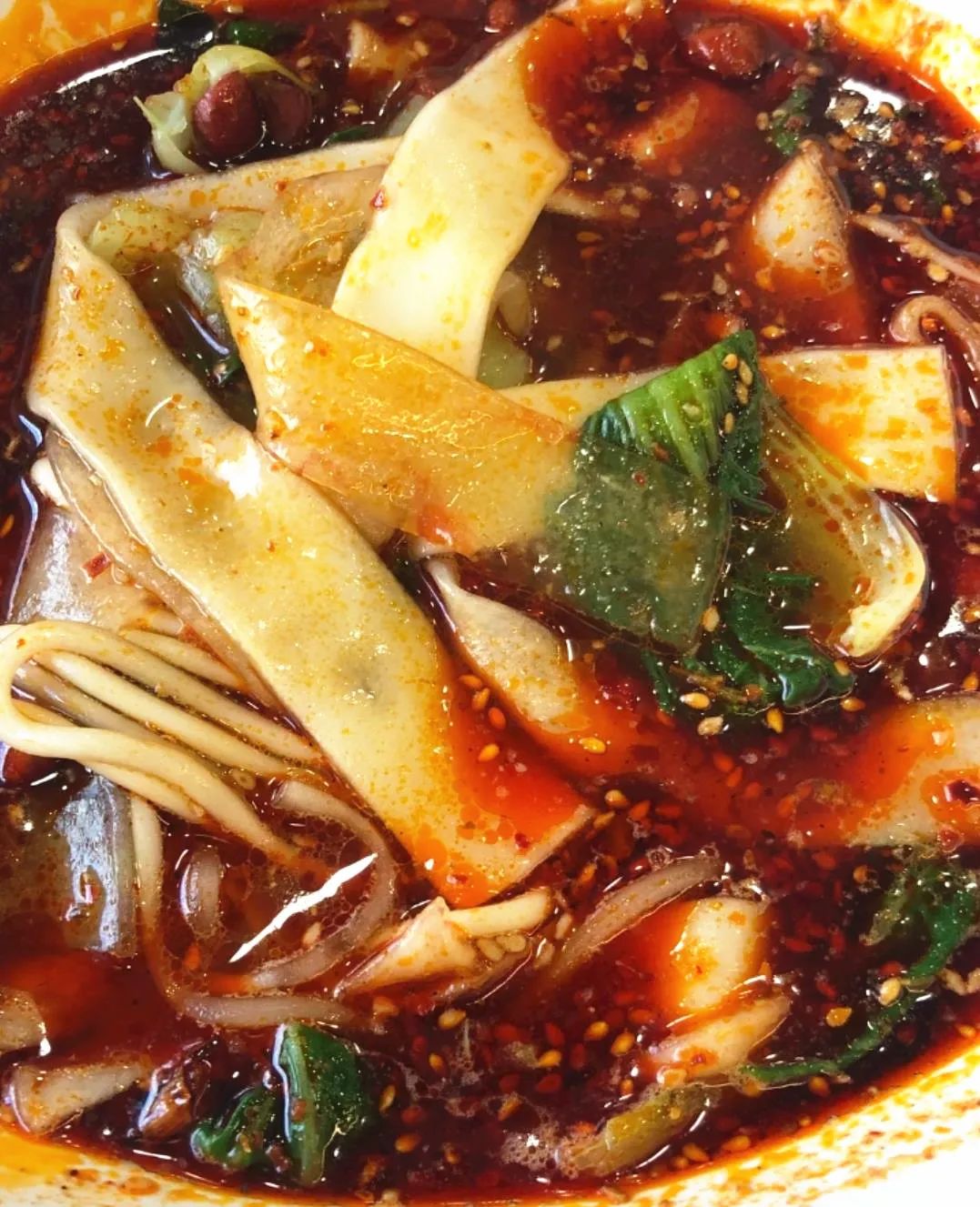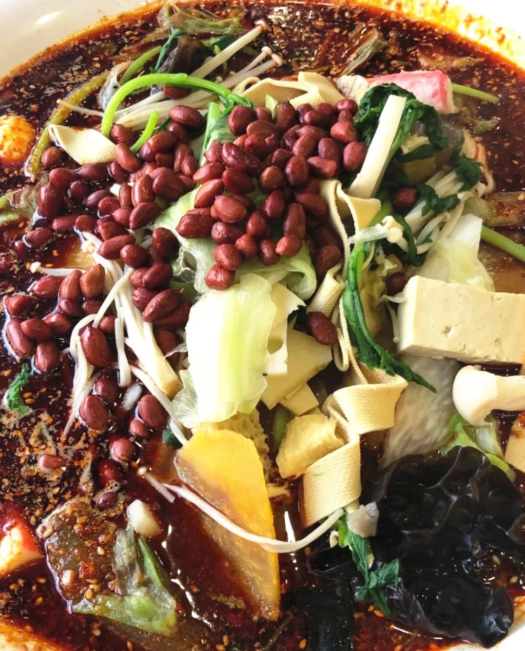 这是一家来了必会空盘的小店,店里的麻辣烫分干炒和盆烩,辣椒油味道香浓,光看着就非常有食欲。