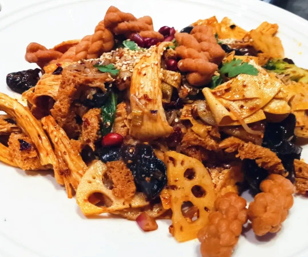 这家店是四川人在银川开的新疆菜,椒麻鸡是店内主打特色,味道和店名一样“绝赞”!椒椒麻麻的配料加上美味鲜嫩的柴鸡,简直是顶配了!店内的饮料也是果粒满满,看似小小的店却给人大大的惊喜!