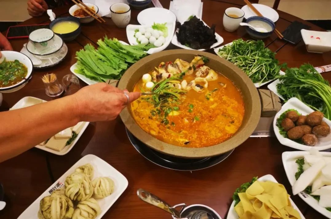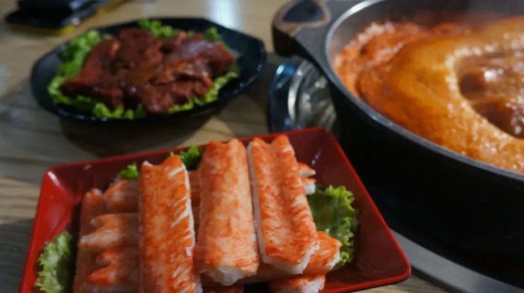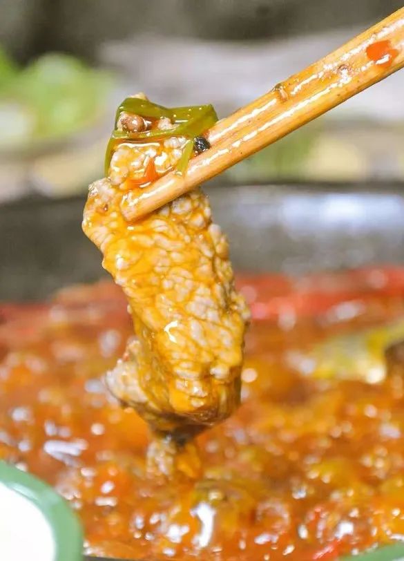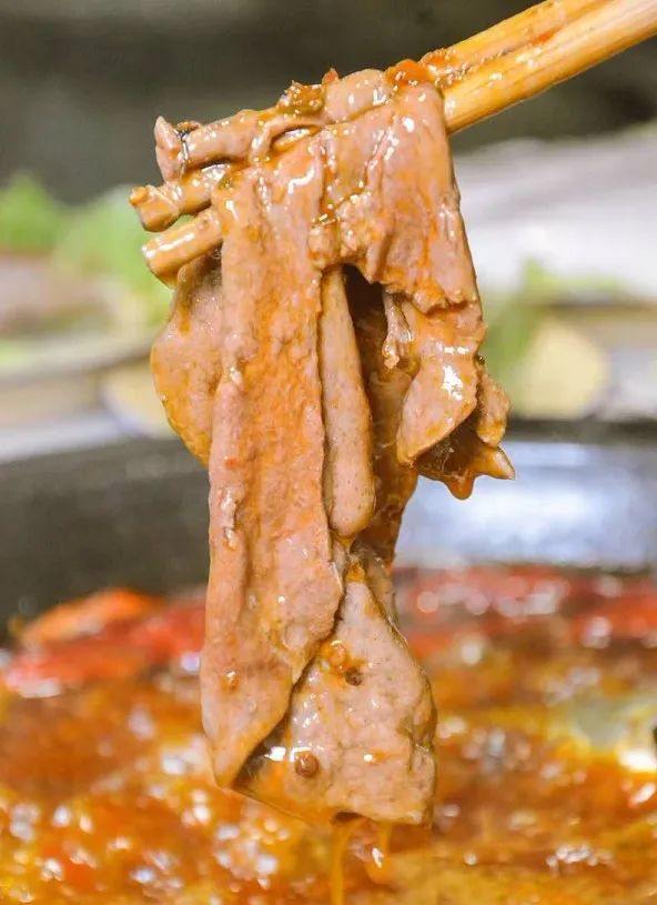 店内的汤底和名字相呼应,红彤彤的,看上去就十分有食欲,在咕噜噜的锅里下上新鲜的菜,不到一分钟,菜就会非常入味。