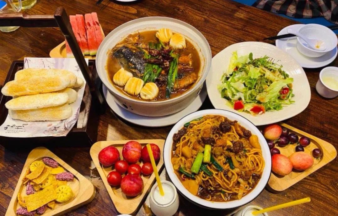 鱼头泡花卷是店内的招牌菜,鱼汤味道特别浓郁,新鲜白嫩的小花卷泡着汤吃刚刚好,手抓羊肉也软嫩不膻,菜品基本上都不重口,还有新鲜的水果自助,最适合一家人来吃~