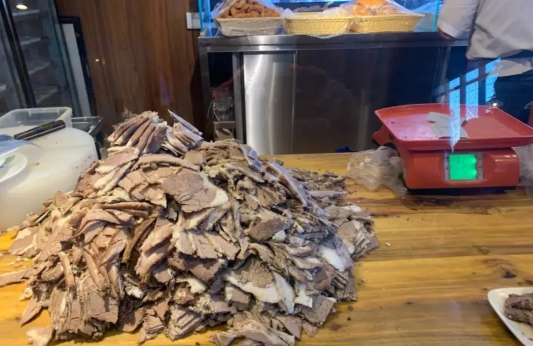 位于小区附近的这家烩肉馆子已经开业十几年了,是银川正宗的清真烩肉馆,切肉的案板就放在店内显眼的位置,顾客可以清楚地看到切肉的过程。