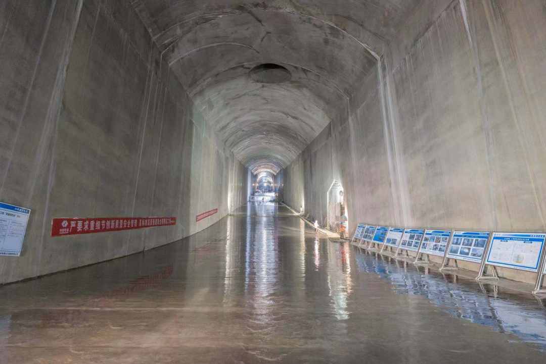 受高速水流空化、气蚀影响,泄洪建筑物是电站运行期间最易出现破坏的工程部位,多年来行业内一直在探索水工隧洞高质量混凝土衬砌的可能,却始终未能取得突破。白鹤滩水电站泄洪洞工程首次实现全过流面浇筑低坍落度混凝土,并研发基于薄壁结构衬砌混凝土的智能温控技术,解决了衬砌混凝土“无衬不裂”的世界难题,发明“施工缝无缝衔接工艺”等一系列创新工艺,彻底解决了衬砌混凝土施工质量顽疾,过流面达到了2米靠尺检查不平整度小于3毫米的标准,实现了体型精准、平整光滑、无缺陷,养护状态下呈现镜面映射效果,在行业内被誉为“镜面混凝土”,确保了泄洪建筑物运行期安全,成为白鹤滩水电站世界一流精品工程的一张名片。