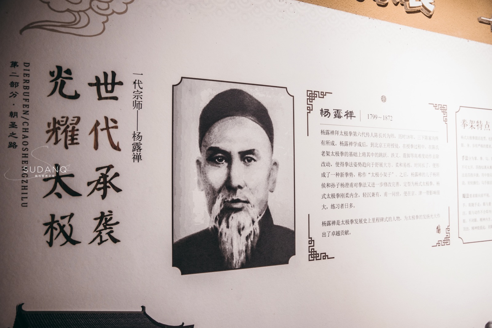 后来,他在这里拜陈长兴为师,并获得武当张三丰秘传拳谱,是杨氏太极拳的创始人。也是因为他,陈氏太极拳打破了内部传递的传统。