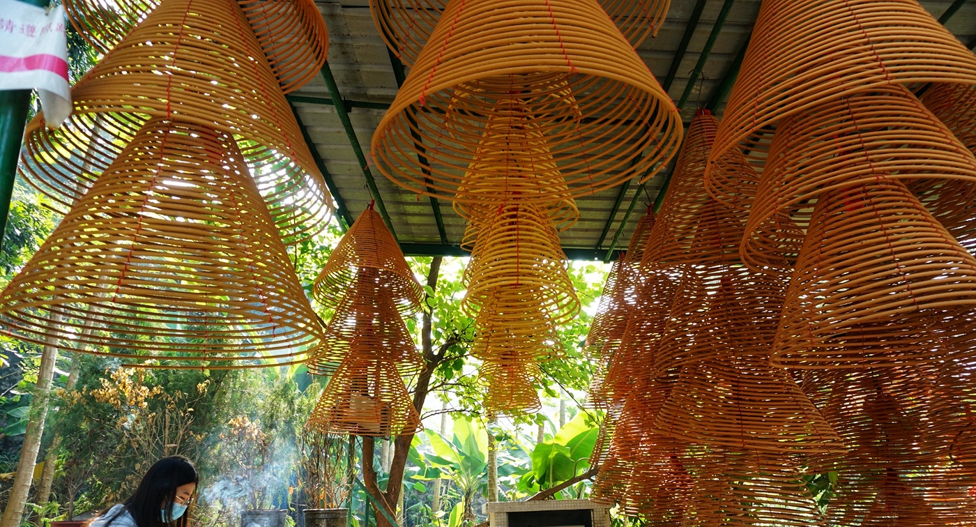 妈祖阁内悬挂于房上的大香,因为形状非常像塔所以称为“塔香”。