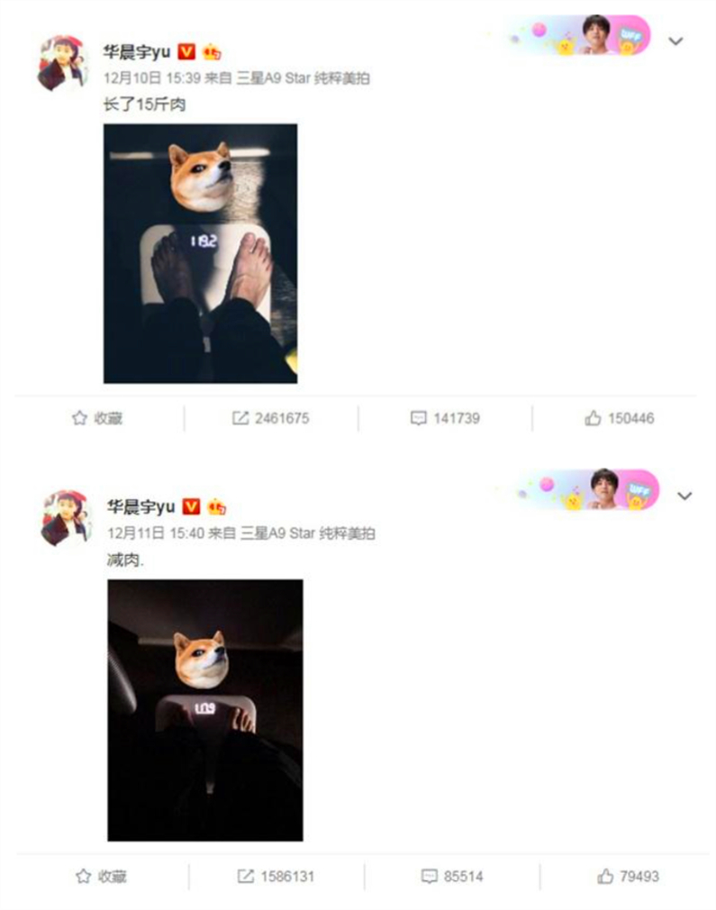 而华晨宇,就常被网友质疑官方身高数据有过美化。根据网上信息,华晨宇的官方身高是172cm。至于体重,华晨宇的粉丝称其稳定在一百斤左右。其实在前两年,华晨宇就曾更新过一条动态,说自己长了15斤肉,而配图的体重秤数字显示119.2,这就说明华晨宇之前的体重大概在105斤左右。很多粉丝都对华晨宇长肉感到欣慰,因为觉得自家爱豆172的个子,100斤实在太瘦。