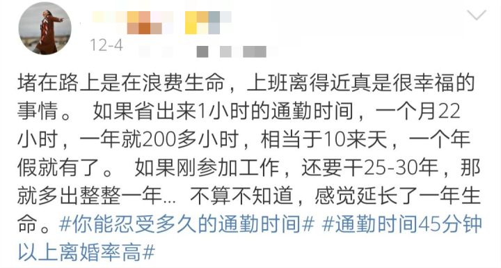 近期,#超千万人正承受60分钟以上极端通勤#的话题冲上微博热搜。