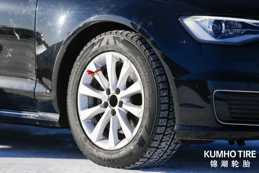 试完四季胎的车后,小编又试驾了装有锦湖冬季胎的奥迪A6L,试驾后感觉两者的差距明显很大。装有冬季胎的奥迪A6L起步就很顺畅,起步给油时轮胎没有原地打滑,以同四季胎一样的速度转向也没出现摇摆不定的情况,只是稍稍有点打滑,然后就回到了正常的行驶轨迹上了,开起来游刃有余,让人心里很有底。最值得一提的就是,冬季胎的刹车距离比使用四季胎的距离少了一半,这一点在冰雪路面上行驶很重要。而换上冬季胎的汉兰达,在冰雪路面上行驶也非常的平顺,和在正常的道路上行驶没有什么不同,即使是冰雪较厚的地方也能毫不费力的通过。