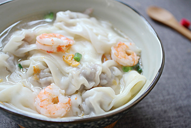 对馄饨的印象,也是一对安徽的夫妇,在我们学校旁边开了一家馄饨店,纯瘦肉的馅儿,馄饨皮和我们的饺子皮一样,但是包法不一样,皮也非常薄。拿一支筷子,顺手一转,就是一个馄饨,包起来很快。