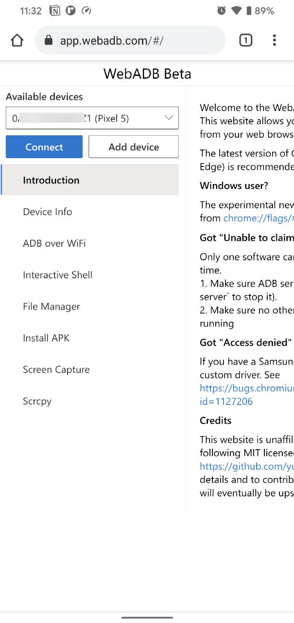 好在 WebUSB API 在安全性和可用性上的不断完善,让「网页玩机」成为了可能。出门在外手边没有已经配置好 ADB 环境的电脑?今天要介绍的 WebADB 可以成为你「移动玩机工具」。
