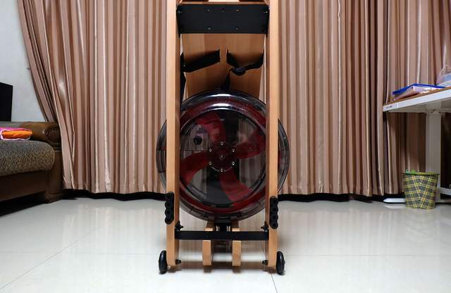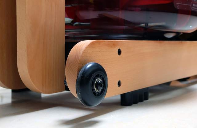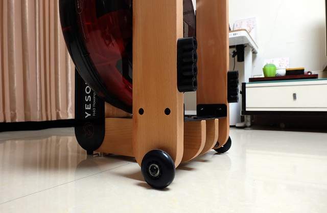野小兽基于划船机不能长时间横放在室内的考量,在划船机的尾部设计了两个静音滚轮,给笔者一种画龙点睛的感觉,两个小小的滚轮便解决了划船机的收纳问题,横放占空间,竖放就没有问题了,将划船机立起来,然后拉到墙角立放收纳,非常方便。