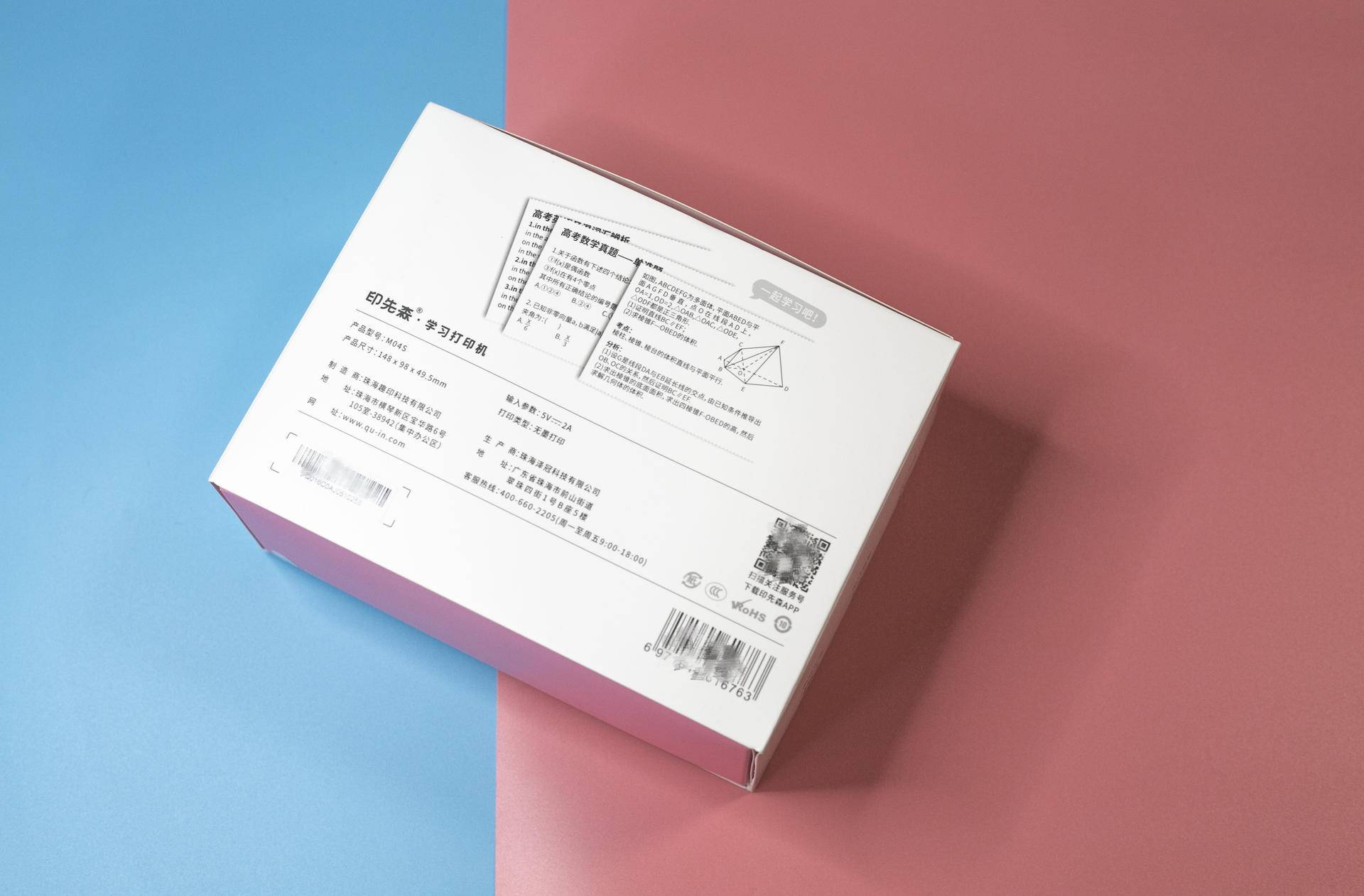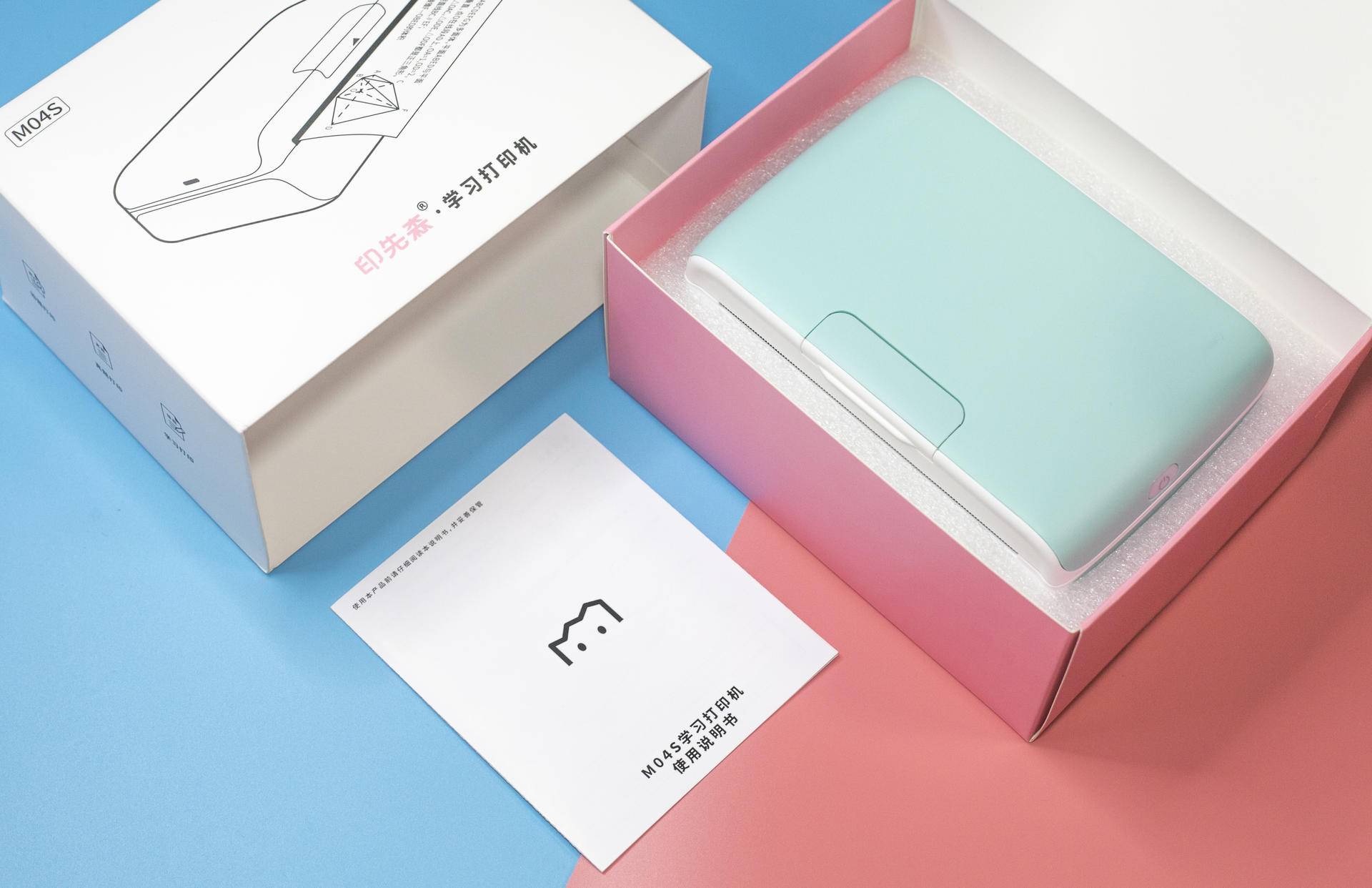 外包装上,或许是因为目标用户是学生群体,所以印先森采用的是白色与粉色相结合的配色,有点小清新的感觉。