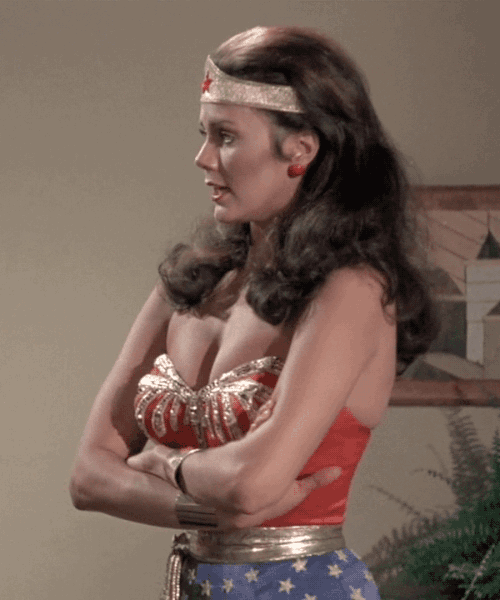 神奇女侠这身英姿飒爽的西装造型,致敬了初代“神奇女侠”琳达·卡特当年在美剧中的造型,特别是这个白色大领子。