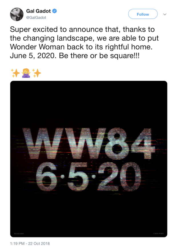 本片前前后后一共改过6次档,首次定档是2019年12月20日,后来分别改档至2019.11.8(为了躲《星球大战:天行者崛起》)、2019.11.1(因为原本当日的《007:无暇赴死》改档了)、2020.6.5(想跟第一部2017年6月份的档期看齐)、2020.8.14(疫情),2020.10.2(疫情),以及现在最终的2020.12.25.