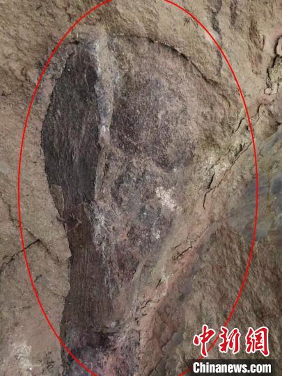 中新网自贡12月22日电 (刘刚)“路边一处断崖上的剖面,颜色和轮廓与周围有所不同。因为职业的缘故,自己意识到这可能是个化石。”12月21日下午,家住四川省自贡市大安区大山铺附近的市民李先生同家人外出散步时,偶然在路边发现疑似大型蜥脚类恐龙腿骨化石。随即,李先生将情况向自贡恐龙博物馆进行了报告,博物馆立即派专家前往现场勘查并妥善保护。