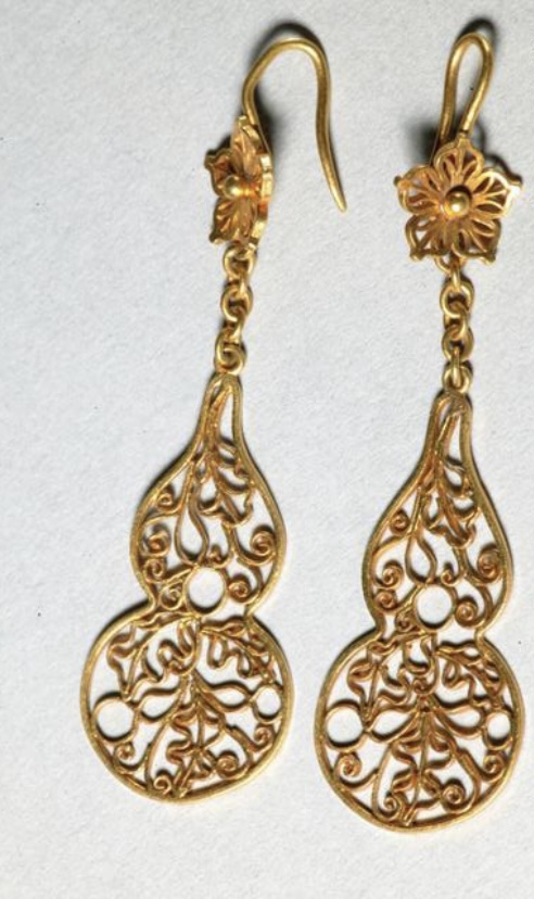 大户人家经常作为规定女儿行为举止的一件饰品,防止女孩子走路时左顾右盼,所以佩戴耳环耳坠。