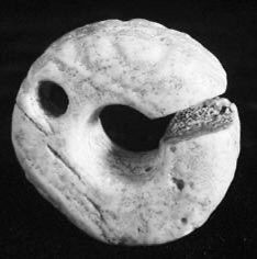 远古时期特别是新石器时期至汉代以前。人类的生活环境极差。人类对恶劣的自然环境充满了恐慌和畏惧。所以需要一件护身符来提高自己对大自然征服的胆量和信心。所以说就出现了类似耳珰的耳饰作为护身符,主要是辟邪和防止妖魔鬼怪进入体内。