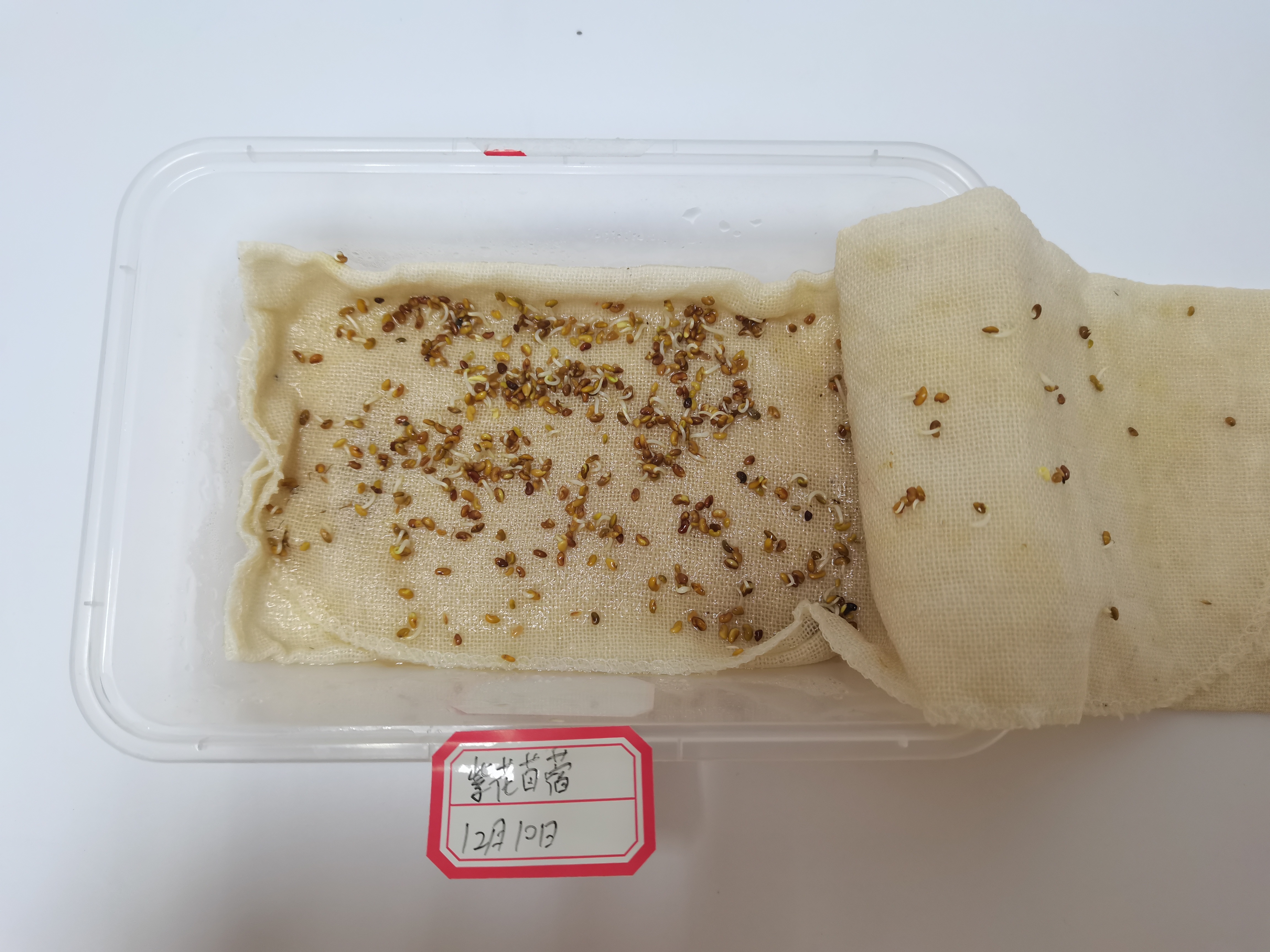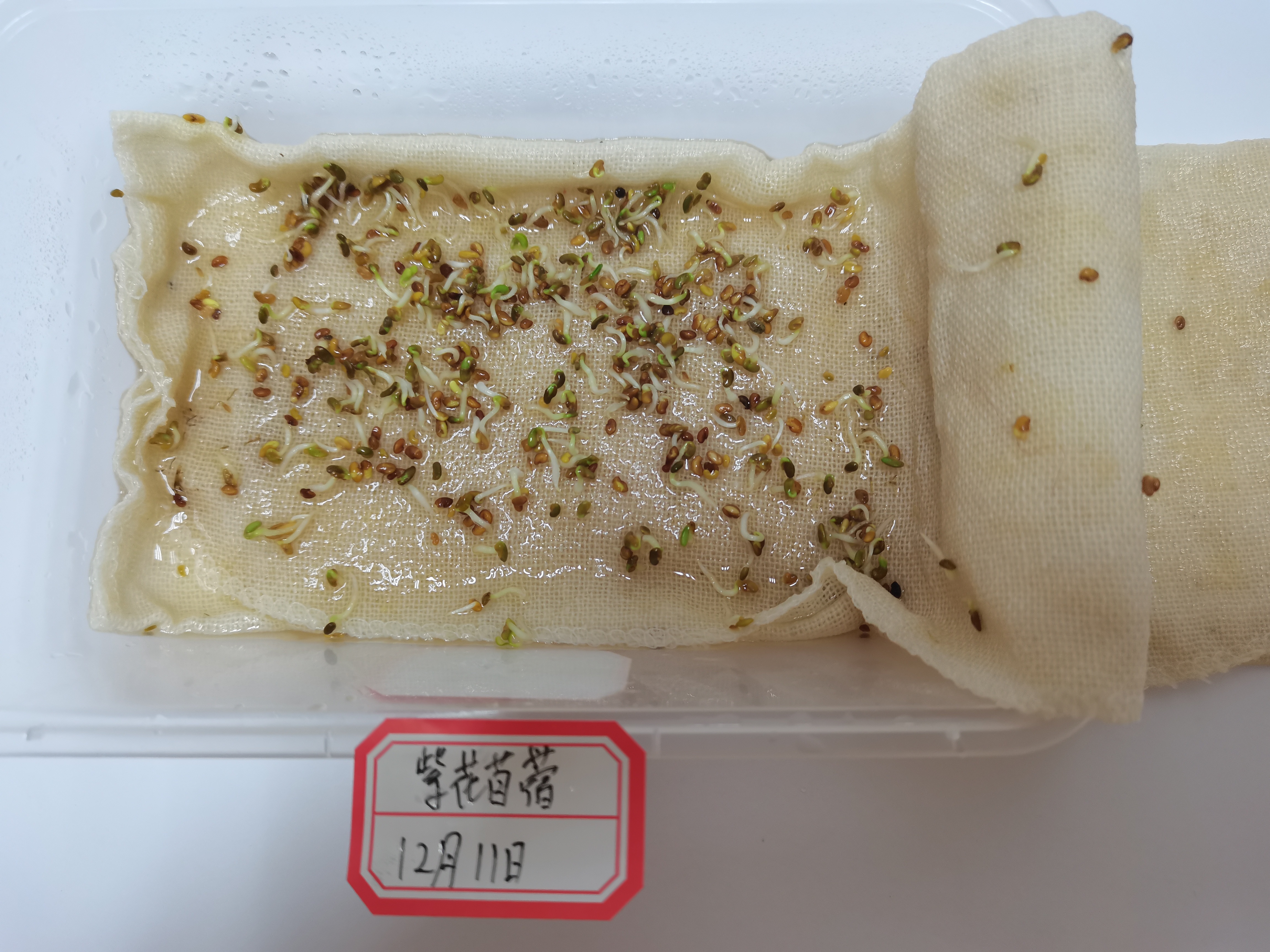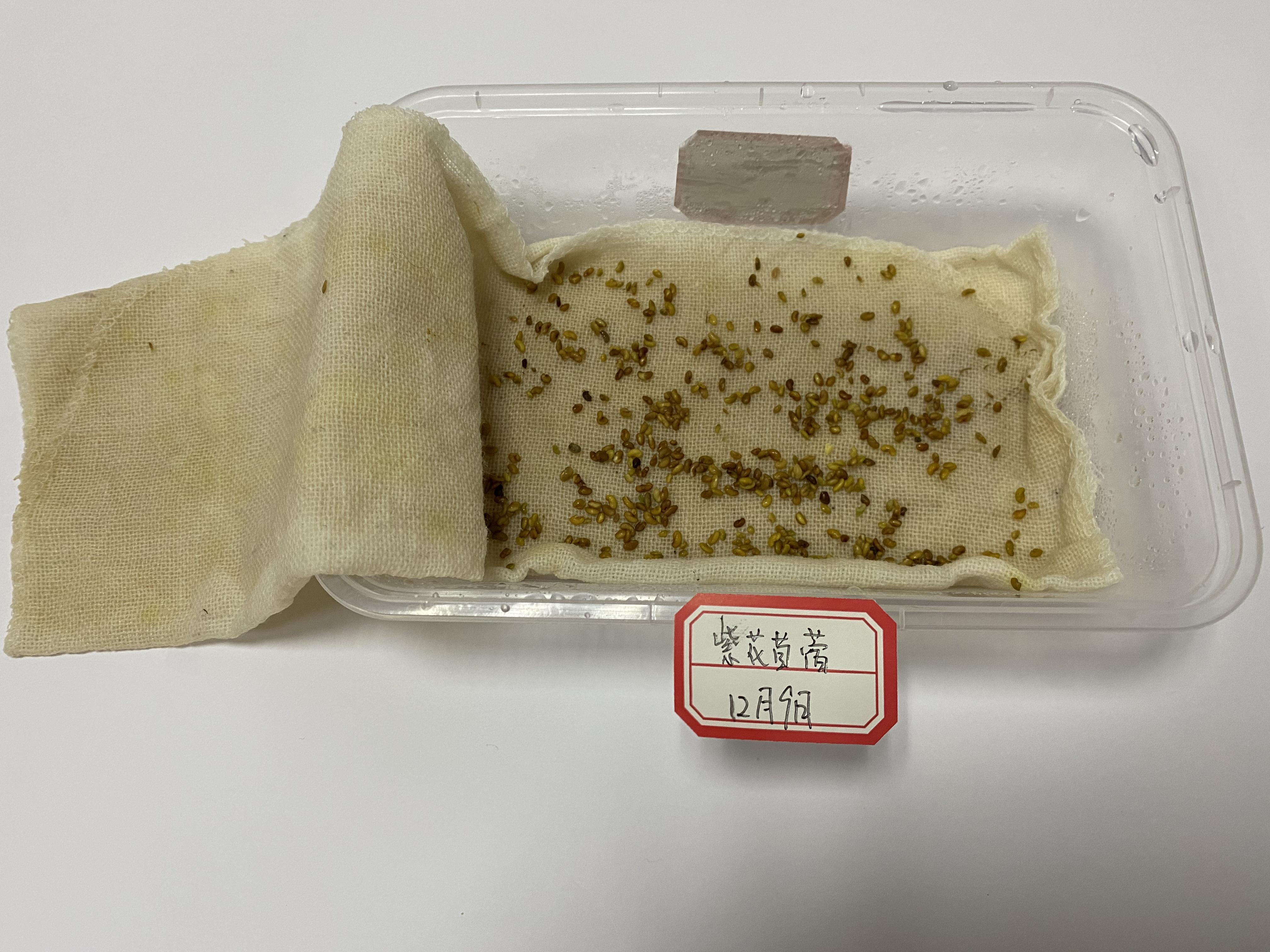 种子于12.8号播种在器皿之中,分布均匀,播种介质潮湿。
