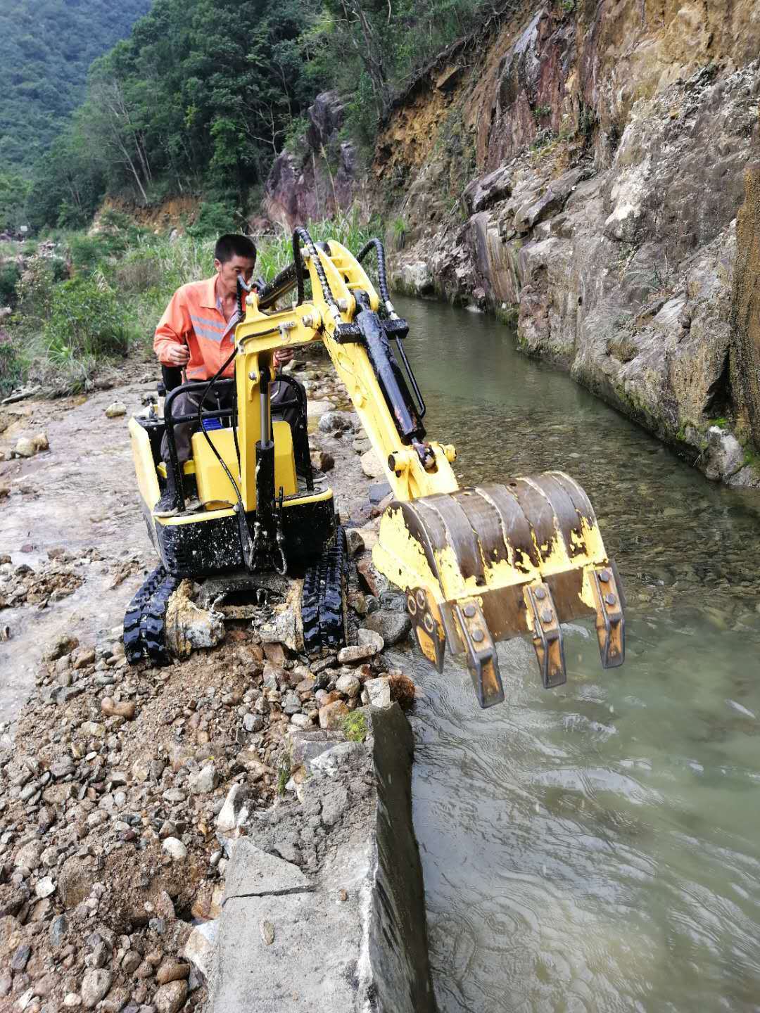 7.在雨季等路况泥泞的情况下行走,农用挖机应该匀速前进,避免泥水进入到挖机内部,有时泥泞较深时也可以使用木板等物品铺平道路。