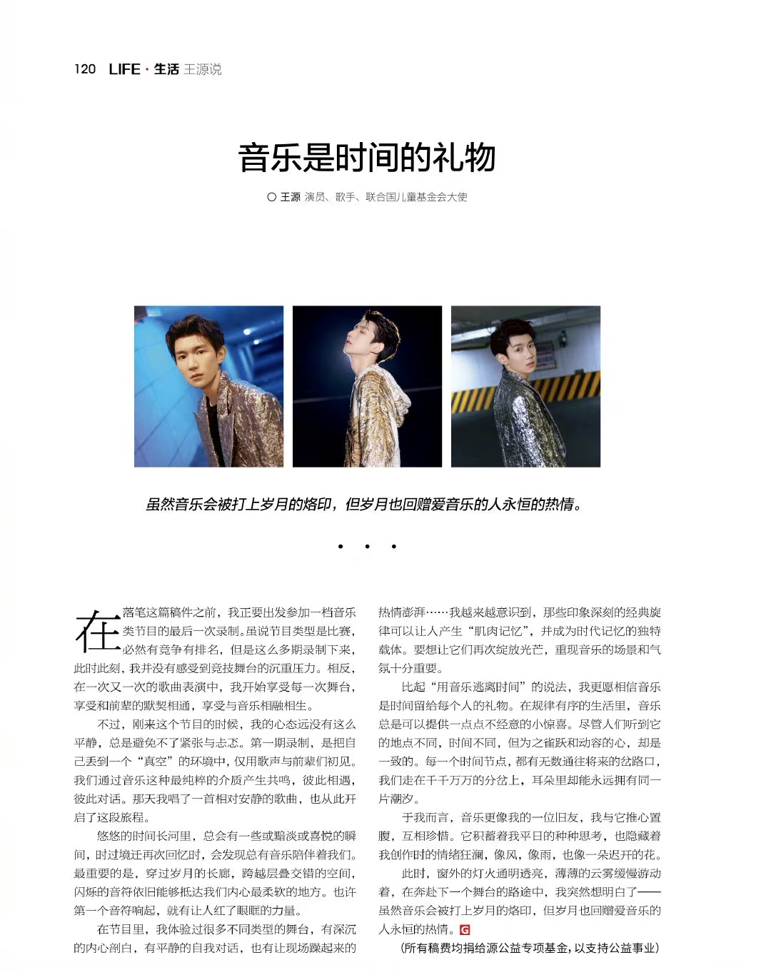 他说“音乐是时间留给每个人的礼物”,每个音符,都是旧友;每段旋律,都是回忆。所以2020年《王源说》最后一期,也是他写给音乐的情书。