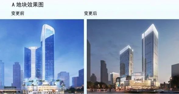 1、A地块塔楼建筑高度降低,办公塔楼建筑高度由 248.15米调整为234.95米 ,酒店式公寓塔楼建筑高度由 165.15米调整为161.05米 。B地块塔楼建筑高度不变。