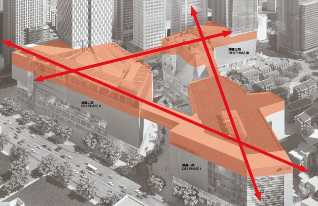 规划中,德基三期之间还将形成南京最长的空中连廊,地上和地下形成立体的连通方式。一期和二期之间不超过30米、二期和三期大约60米,将在新街口形成透明的空中回廊。