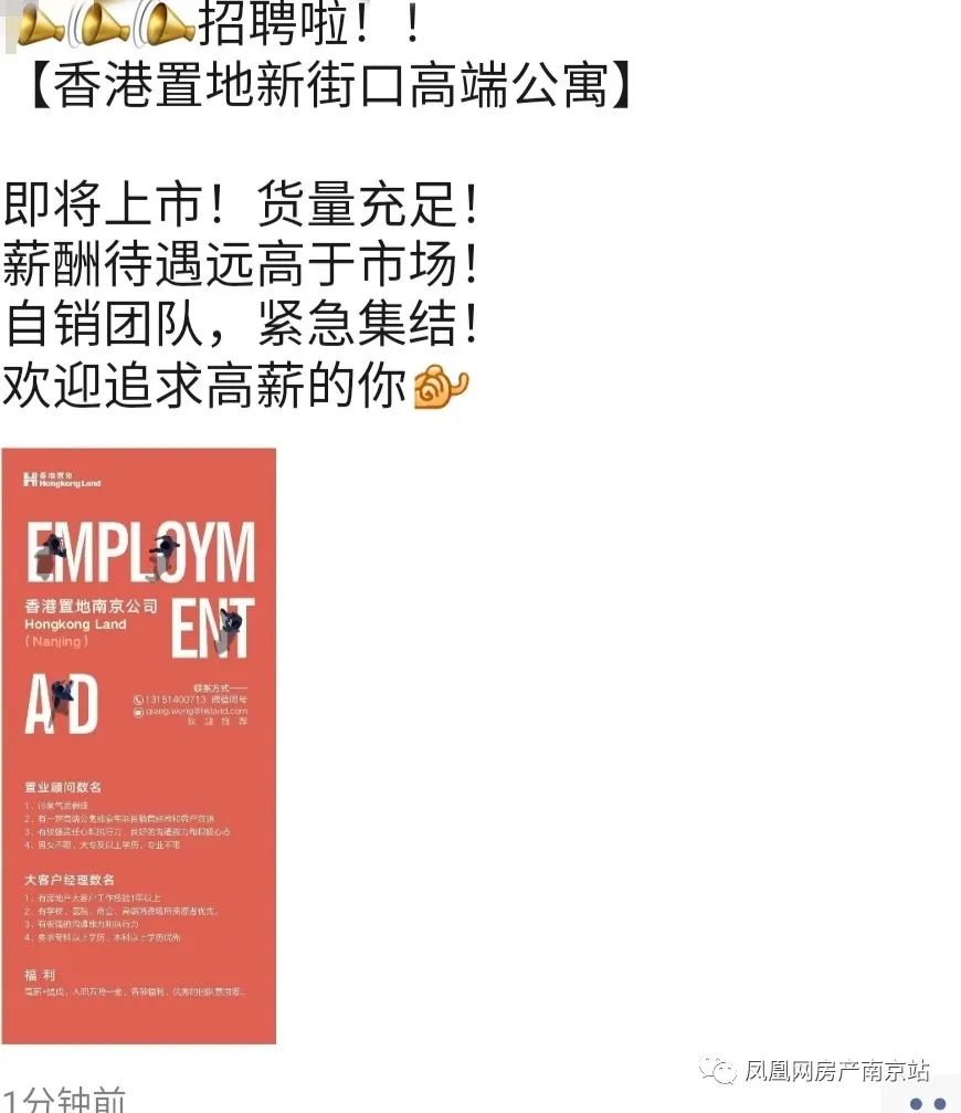 近日,我在朋友圈看到香港置地新街口项目正在招聘,着手组建销售团队!