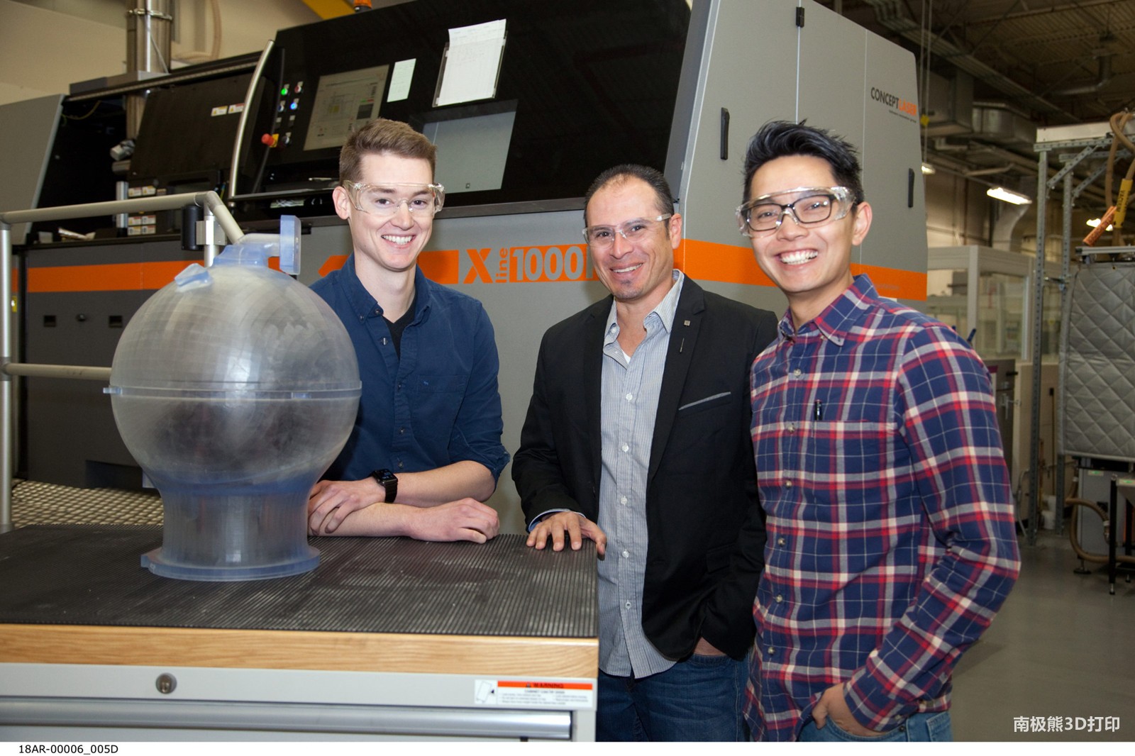 △Aerojet Rocketdyne的增材制造团队,从左至右:Bryan Webb,Ivan Cazares和Alan Fung