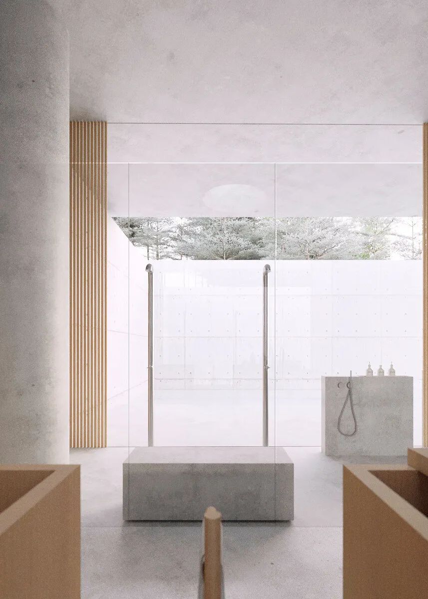 超大的淋浴间仿佛让人置身梦境,纯白的色调打造干净的氛围,些许木色的元素运用更符合空间舒缓、温馨的格调。
