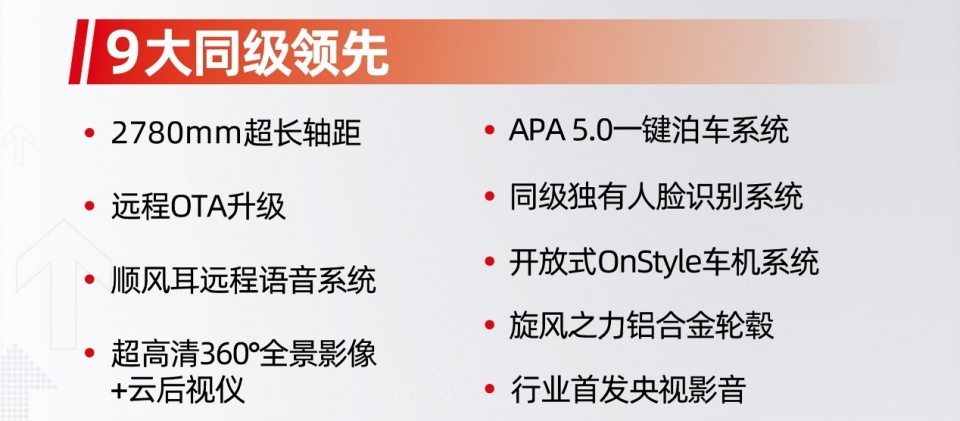 当红实力带来九大同级领先、六大全系标配、三大行业首创