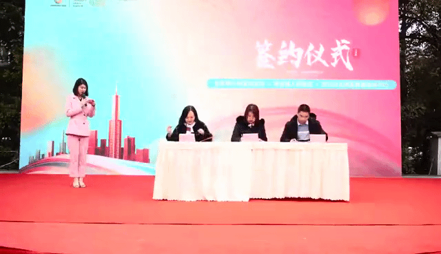 寿安镇人民政府领导代表曹靖林、花仙境总部直播基地负责人何邦君及四川省阳光职业技能培训中心校长卢红英在典礼上共同签署了“村播创客”培训行动的合作协议。
