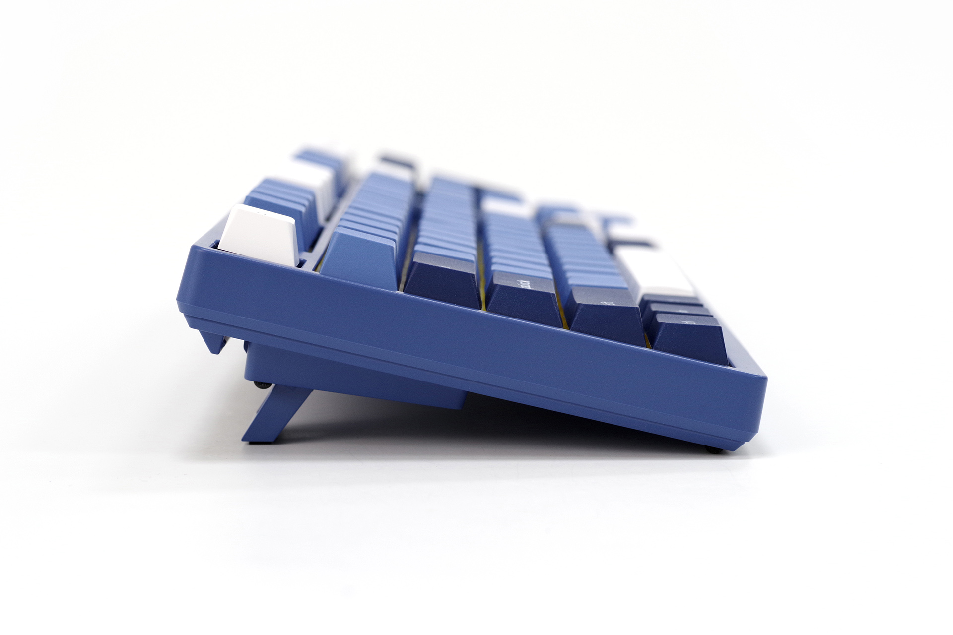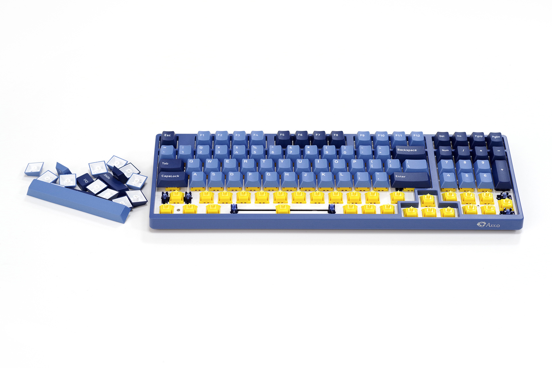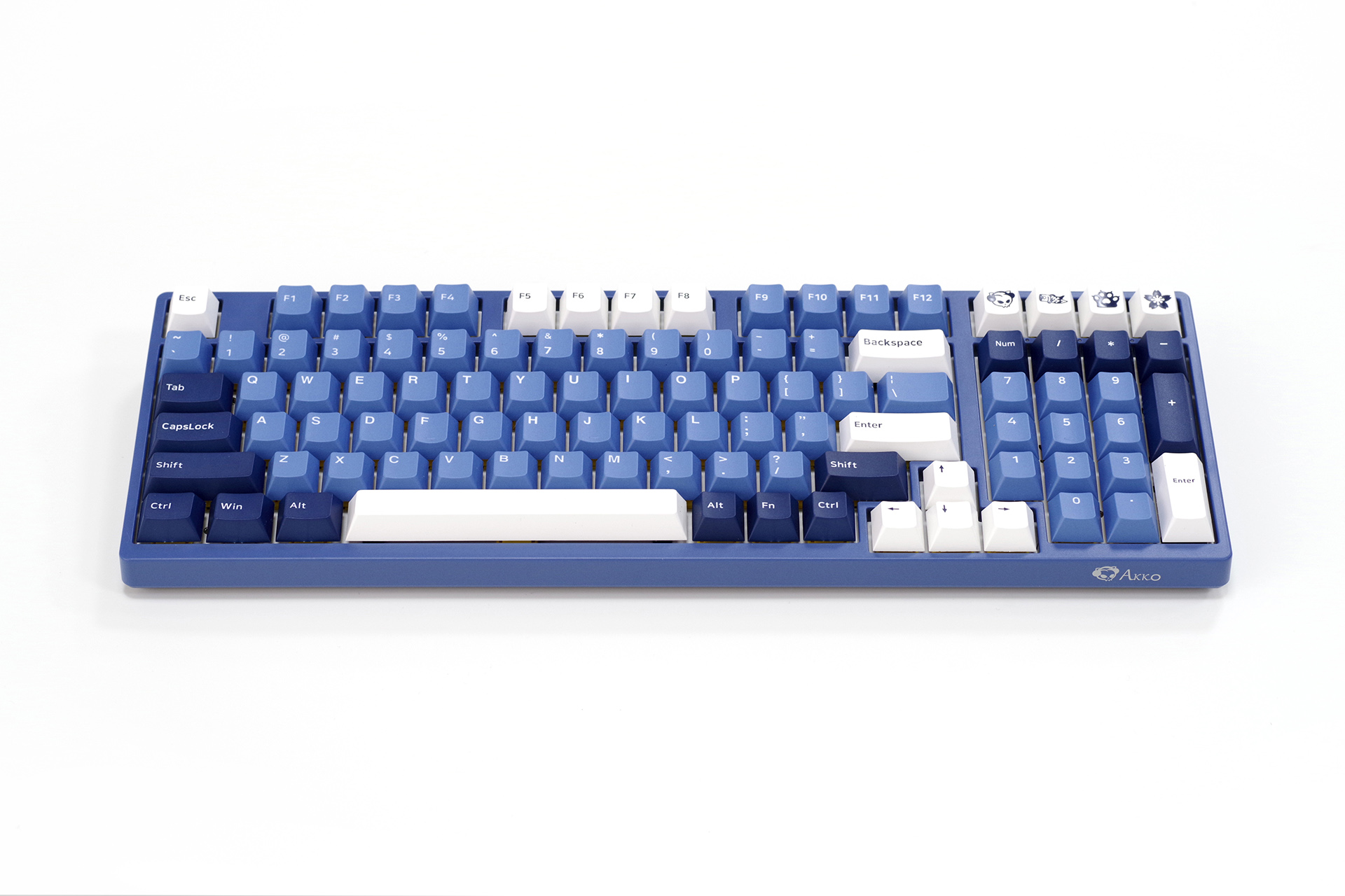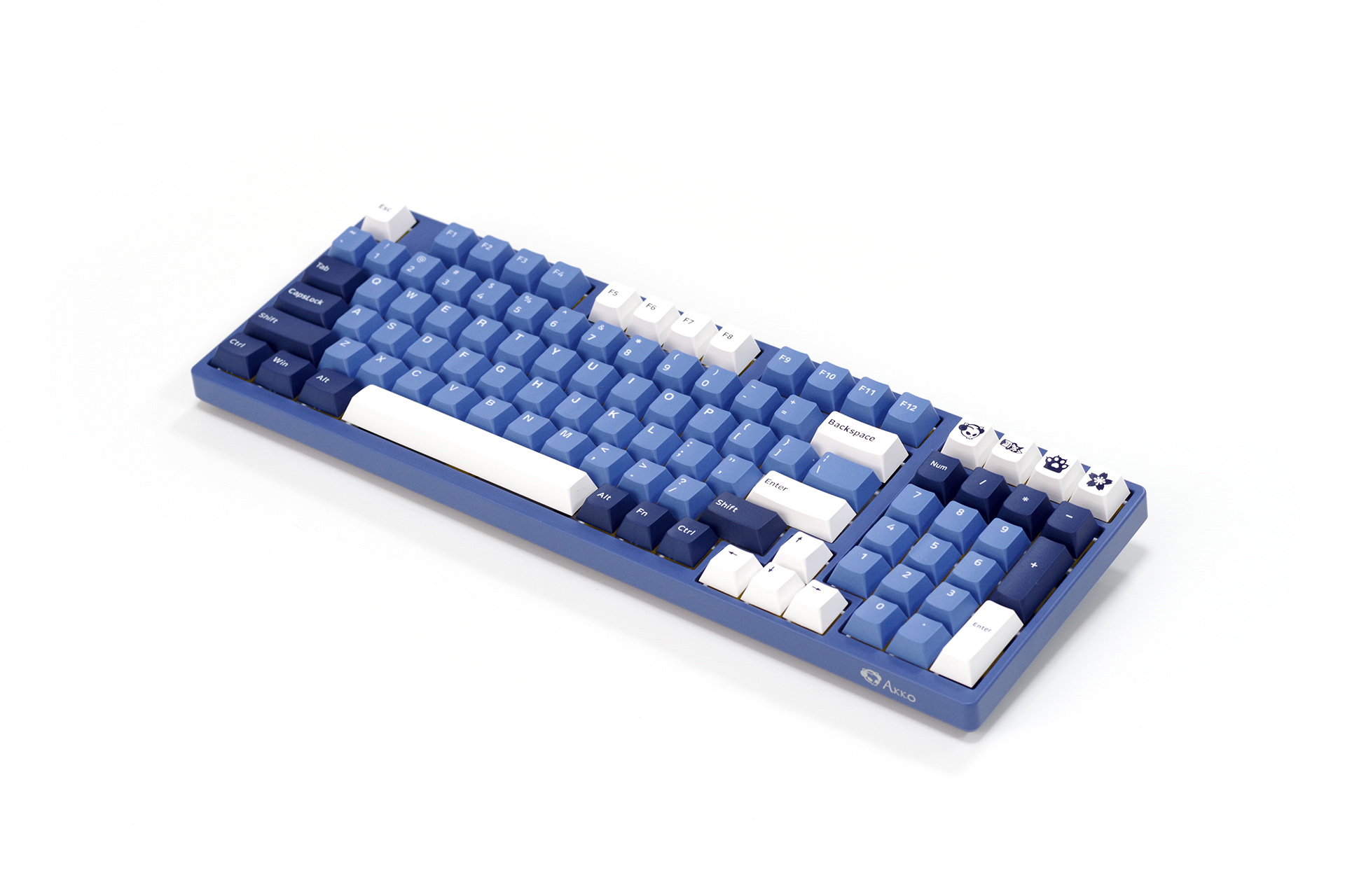 键盘本体,98键布局,窄边造型,三阶蓝色的“海洋之心”主题色。